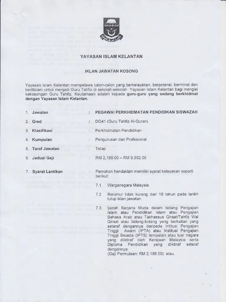 Iklan akan dikeluarkan pada 7 julai 2021.
